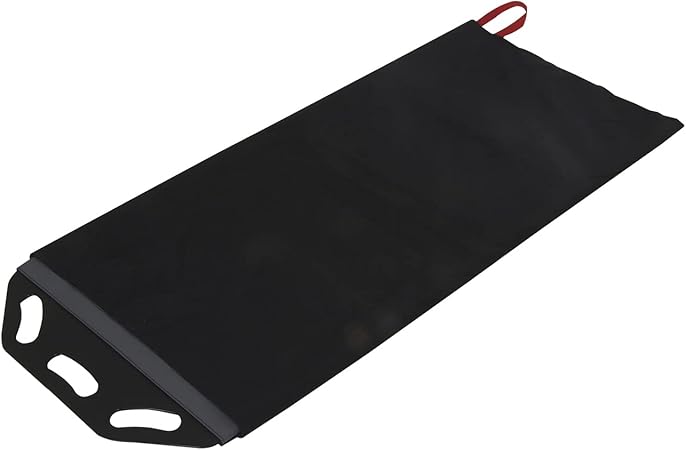 構造はいたってシンプル。板に滑りやすいナイロン製のシートが巻かれています。秀逸なところは板の部分がジャバラに折れ曲がる点。この点がベッドからリクライニングティルト車椅子に移乗する際にデコボコにフィットしやすいメリットがあります。